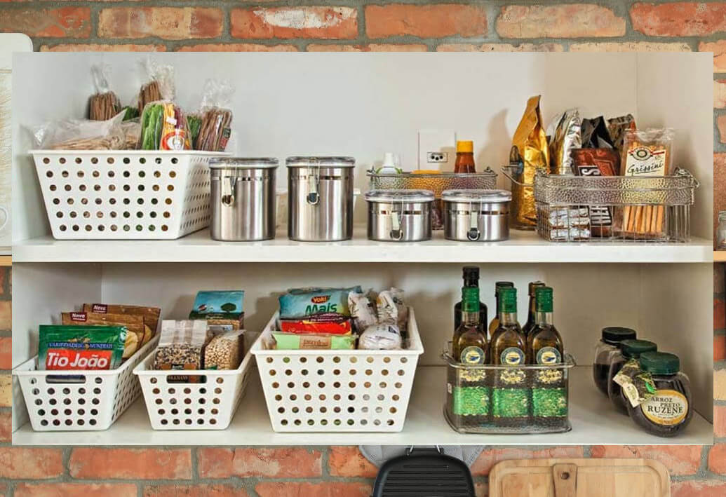 Quando se tem pouco espaço é importante saber aproveitar as áreas internas dos armários. Um exemplo é livrar-se das embalagens de alguns produtos e alimentos, guarde-os e organize-os em potes de vidro, metal ou de plástico. Além de facilitar na visualização, fica mais fácil de organizar. Uma outra dica é usar organizadores para armários, como suporte de xícaras e pratos e até cestas de plástico.