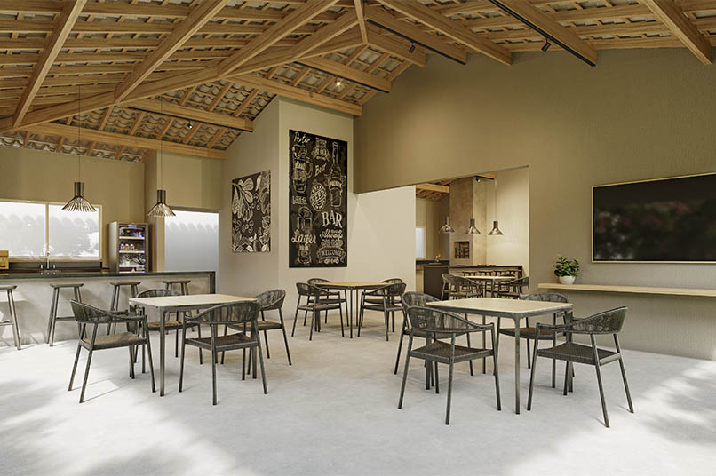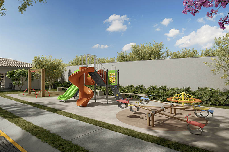 Estão disponíveis casas de 47 m², em lotes de 133m². Todas as unidades têm 2 quartos, sala, cozinha e banheiro. O condomínio fechado conta com piscina, espaço pet e academia ao ar livre.